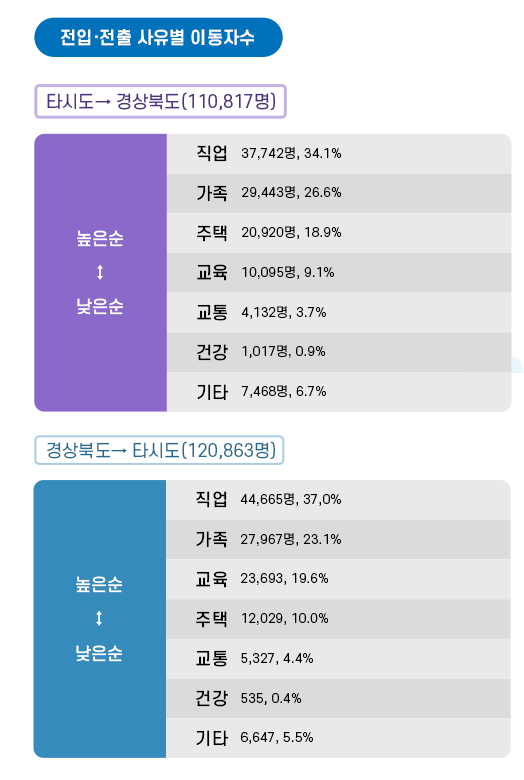 시도 및 전입사유, 전입지·전출지별 이동자수(청년 기준)