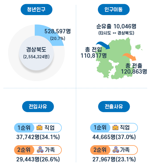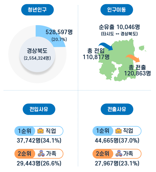 | 시 도 | 총 인 구 | 19 ~ 39세 (경상북도청년기본조례) |